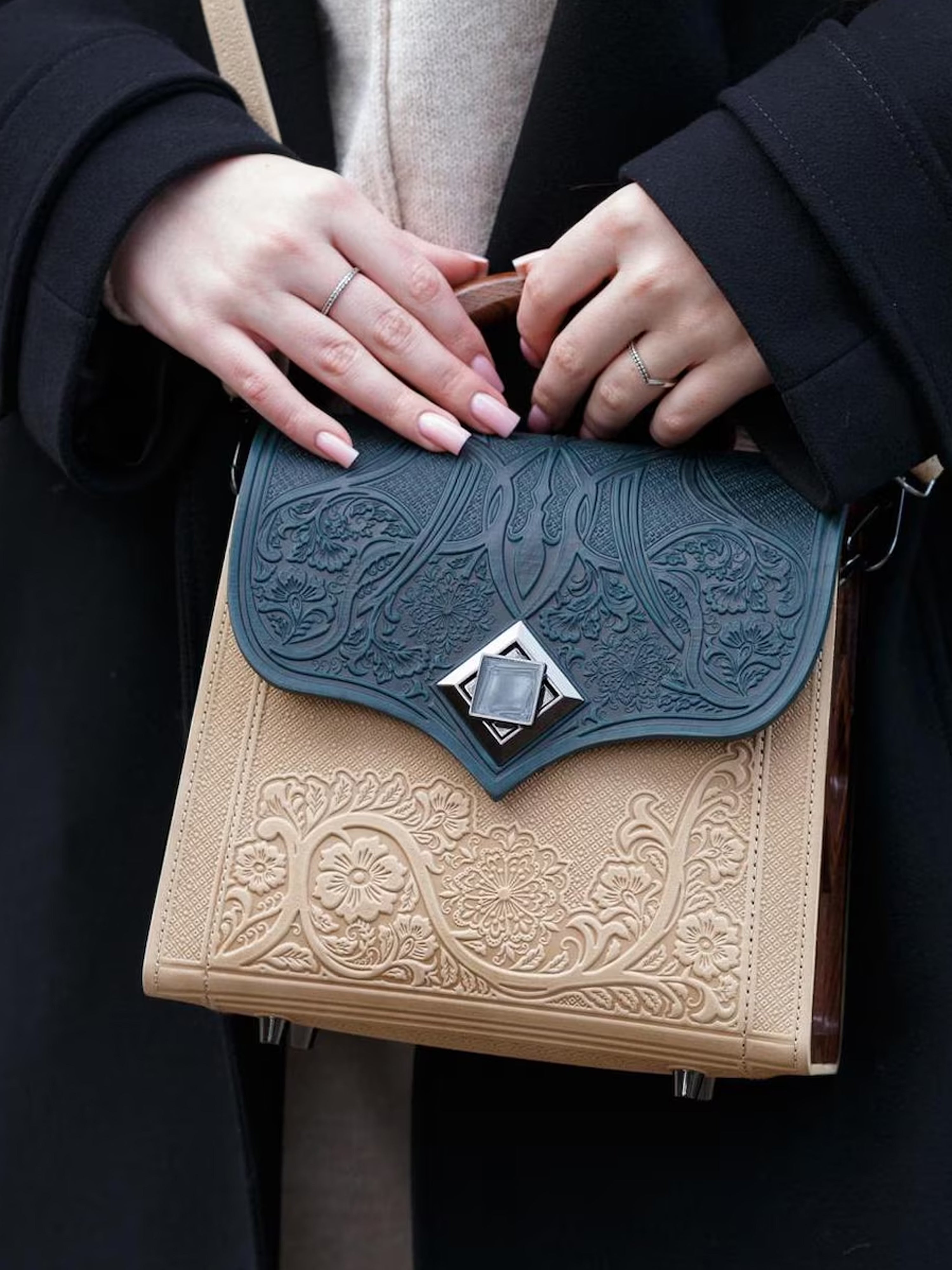 FAINA isn’t simply carried — it becomes part of you. Embossed with precision and handcrafted from rich, full-grain leather, each piece whispers of quiet luxury. From spontaneous mornings to candlelit evenings, your bag moves in perfect rhythm with your life.